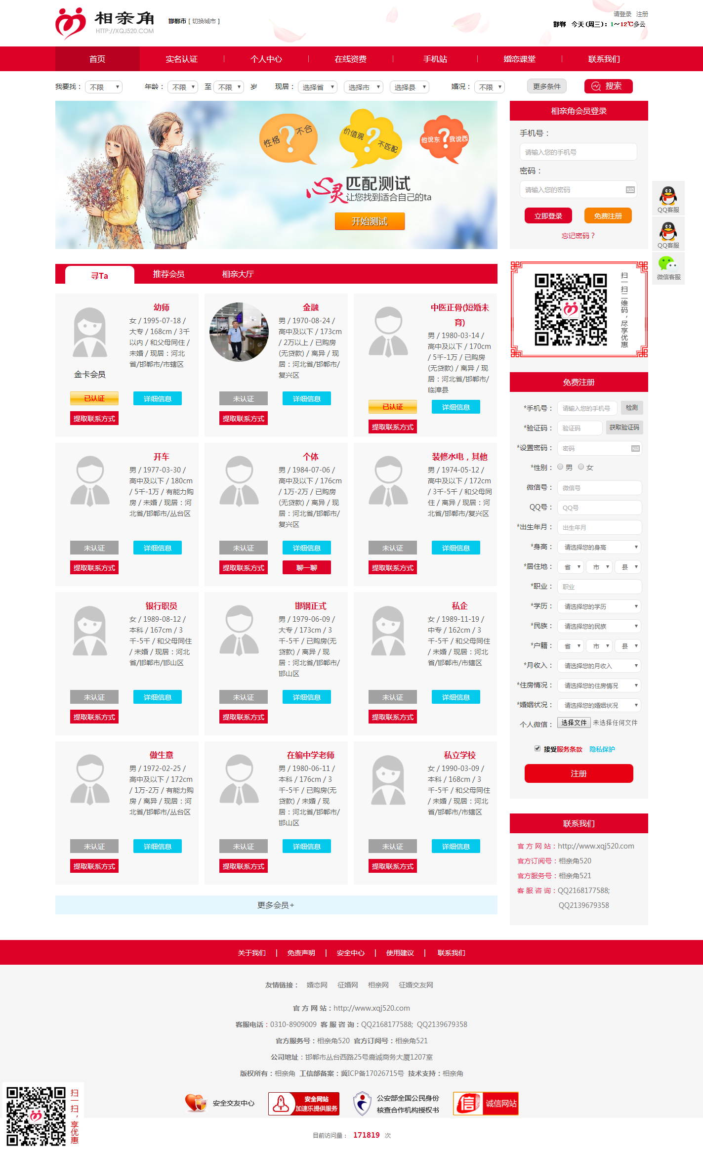 新聞?wù)?相親角是一家工商局注冊(cè)的、工信部備案的免費(fèi)注冊(cè)、實(shí)名認(rèn)證、自主征婚的相親平臺(tái)(電腦版和手機(jī)站兩個(gè)網(wǎng)絡(luò)平臺(tái)),擁有完善的服務(wù)流程、安全的保密機(jī)制、成熟的服務(wù)理念,擁有眾多優(yōu)質(zhì)會(huì)員,我們用心、細(xì)心、周到的專業(yè)化服務(wù),使更多的人擁有了幸福婚姻!