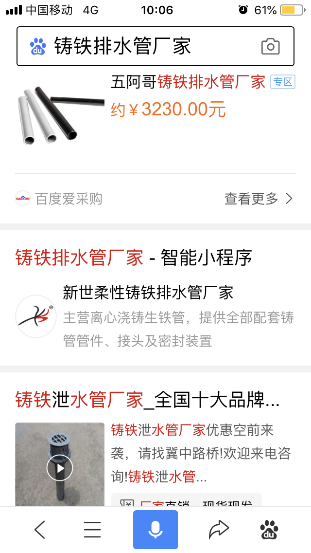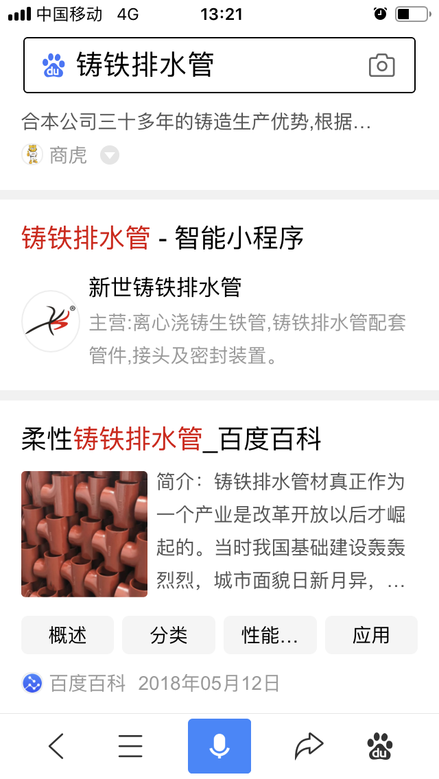 百度小程序:新世鑄鐵排水管、新世柔性鑄鐵管廠家、新世柔性鑄鐵排水管廠家、新世環氧鑄鐵管廠家、新世鑄鐵管件廠家、新世環氧排水管廠家、新世環氧樹脂鑄鐵管廠家、新世鑄鐵排水管件廠家