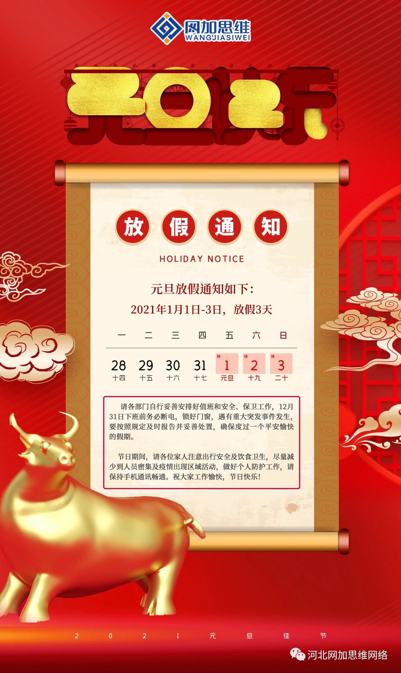 值此新一年到來之際,網加思維全體員工祝網加摯友們:元旦快樂,牛年吉祥,年年皆勝意,歲歲都歡愉。